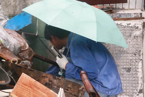 又抄了幾十只表,小吳來到一個木板、破家具等雜物的角落,把一張破竹椅拿開,又把一塊木板移開,然后蹲下身去撥弄起來,過了一會離開了。我說,你在找什么?他說,這下面有只表要抄,這戶人家把裝水表的位置作堆積場所了,不好抄。