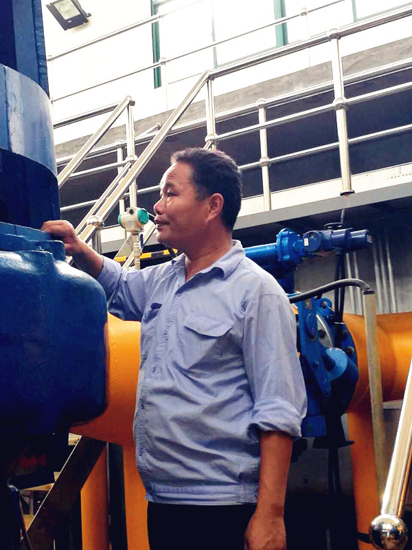 從 2001 年至今,張立平一直從事設(shè)備維修管理工作。剛參加工作時(shí),張立平也曾對(duì)許多故障束手無策。對(duì)此,他一方面在網(wǎng)上查閱資料,另一方面虛心向廠家和同事請(qǐng)教,仔細(xì)拆卸每一個(gè)故障設(shè)備的部件,細(xì)致琢磨每個(gè)零件的功能原理,經(jīng)過幾年的努力,逐漸成為了設(shè)備保障的行家里手。2013年,在設(shè)備廠家撤退、無現(xiàn)成備件、無直接可借鑒的技術(shù)的情況下,張立平組織維修力量,對(duì)新區(qū)離心機(jī)進(jìn)行專題研究,并先后開展了離心機(jī)下水管優(yōu)化改造、油泵改造、設(shè)置離心機(jī)沖洗管等創(chuàng)新舉措,不僅解決了原來離心機(jī)處理量小、含水率高的基本性難題,而且緩解了漏油故障和氣泡問題,確保了污泥處理系統(tǒng)的全運(yùn)行。圍繞保障運(yùn)行,張立平提出了“以養(yǎng)代修、以改促修”的維修理念,他帶領(lǐng)團(tuán)隊(duì)先后完成了鼓風(fēng)機(jī)循環(huán)水泵自動(dòng)控制方案、排氣閥門優(yōu)化改造方案等10 余項(xiàng)創(chuàng)新型改造方案,通過實(shí)施優(yōu)化改造,使設(shè)備經(jīng)常性故障得以逐步消除,為水處理系統(tǒng)的正常運(yùn)行提供了有力保障。