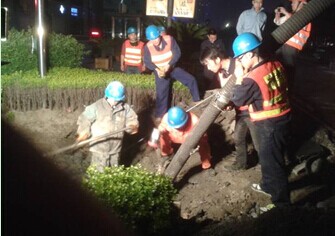 4月17日夜,養護分公司對位于金柯橋大道萬國中心旁的被埋窨井進行挖掘、清掏作業,這是管道養護組成立以來的第一次夜間作業。