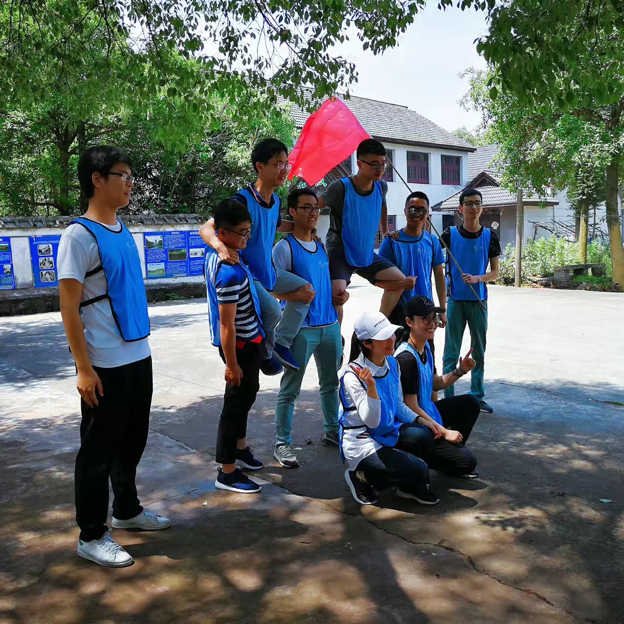 活動中,參加人員被隨機分為四隊,通過各小組集體討論,確定了各自的隊名、隊旗、隊標、隊歌、口號等。經(jīng)教練針對性的啟發(fā)和點評,較圓滿的達到了挑戰(zhàn)自我、凝聚團隊的培訓目的。